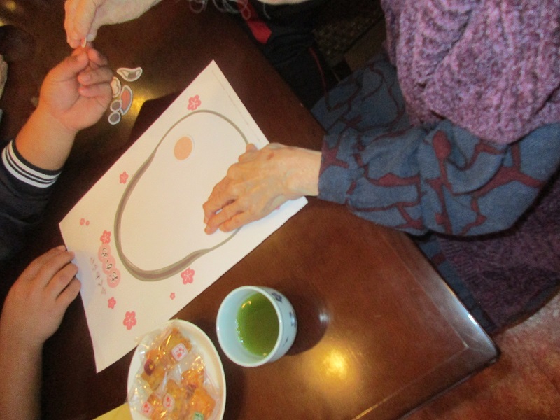 お正月らしい福笑いの他トランプやオセロなどで楽しんでいただき、笑い声が絶えない時間となりました。