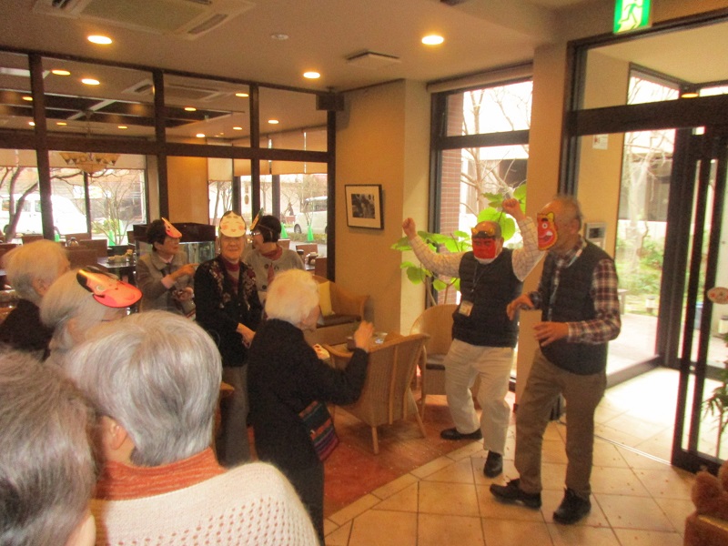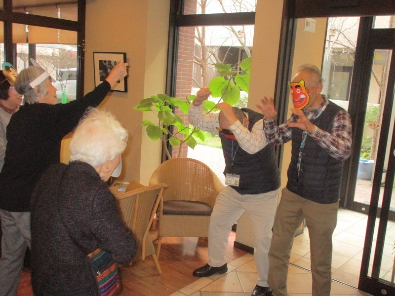 今年もご入居者様にお福や桃太郎のお面を被っていただきながら、