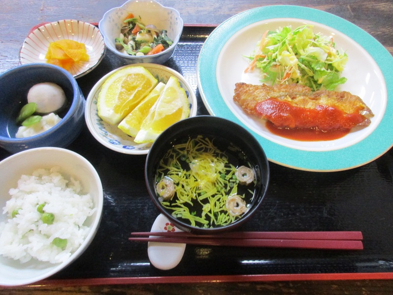 昨日は桃の節句で、ご入居者様には華やかなちらし寿司とハマチのお刺身がメイン