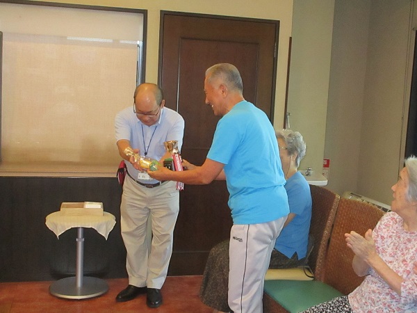 のH様が見事優勝されました!真剣勝負の中でも入居者様同士で声援を送り合ったり