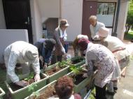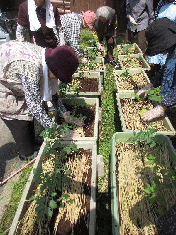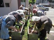 昨日は、11名のご入居者様と野菜の苗植えを行いました。