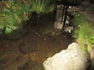 敷地内の小川、“森のせせらぎ”にメダカ150匹を放流しました。