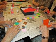 お隣のご入居者様同士で作り方を教え合ったり、合同作業で長い飾りを作りながら、