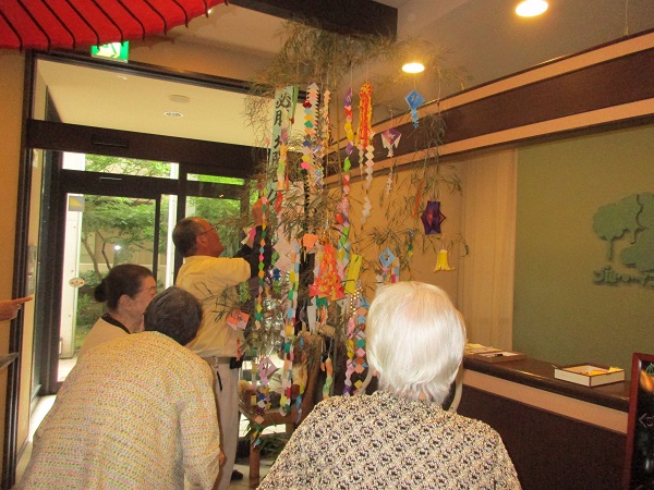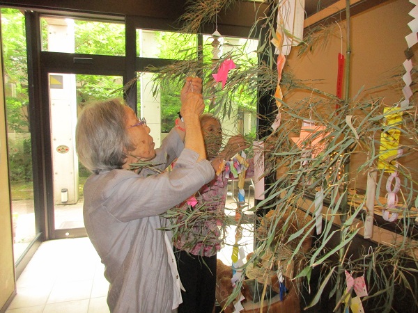 先日、ご入居者様と一緒に七夕の飾りつけを楽しみました。