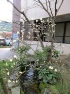 室内にはとても活けることができず、昨年同様、エントランスの小川に