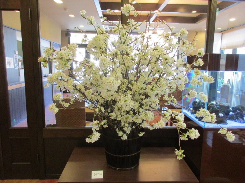 敷地内の桜を見ながら・・・は無理でしたが、本日は、お花屋さんに活けていただいた