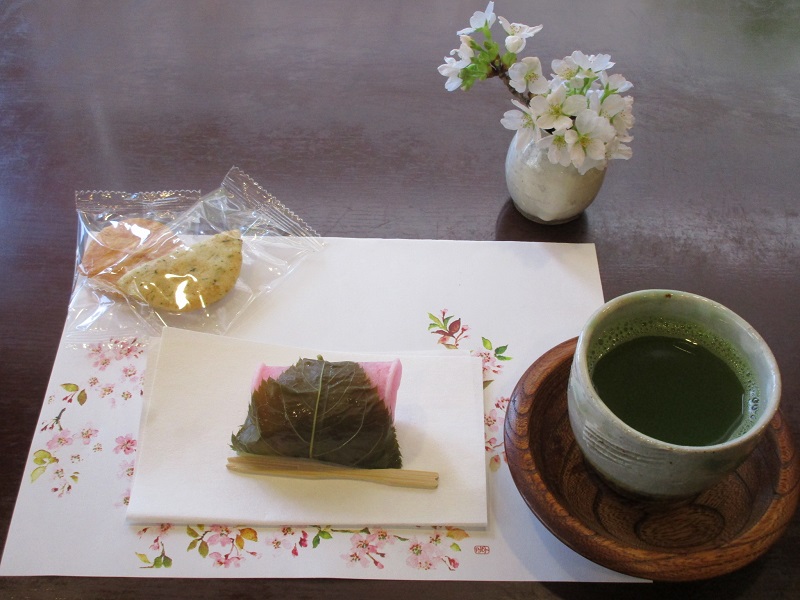 今年のお菓子は、関東風の桜餅で、皆様にも大変喜んでいただきました。