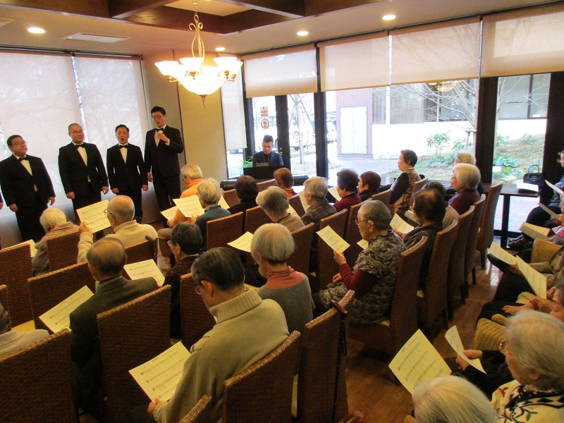 くださり、入居者の皆様と一緒に口ずさむ楽しい時間も設けてくださいました。