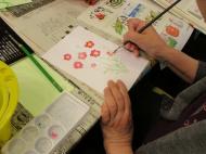 ハガキをキャンバスに色鉛筆や水彩で描かれ、素敵な作品が仕上がりました。