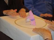 お茶会の後は、ご入居者様と牛乳パックタワーゲームを行いました。