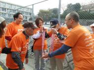 お揃いのTシャツに身を包み、前の区間を歩いた方から襷を受取り