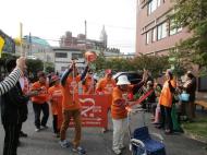 横断幕や旗を手に歩いた1キロ。スタッフSも同行しましたが、お天気にも