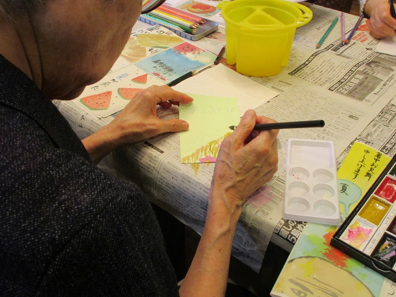 お二人は、皆様と一緒に「絵葉書」を作ろうと計画、事前の打ち合わせでも