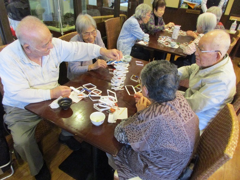 ご入居者様は真剣にタワーゲームに挑んでおられました。