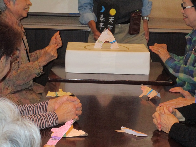 今年の春先に皆様に作っていただいた「紙相撲」で、白熱した戦いが