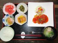 この日のメインは、トマトソースが添えられた鶏肉のピカタ。