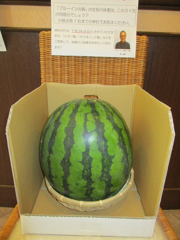 「社長の体重は、このスイカの何個分でしょう??」というクイズを皆様に出題しました。