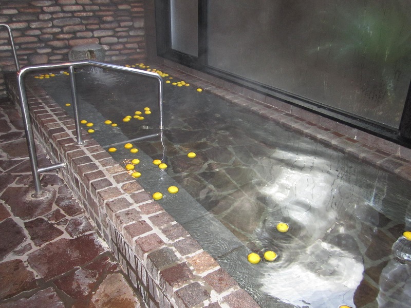 共同浴場はゆずの良い香りが広がっていて、