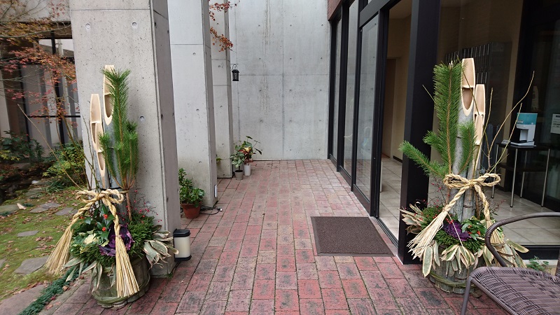 エントランスには門松、ロビーには縁起物やフラワーアレンジ、