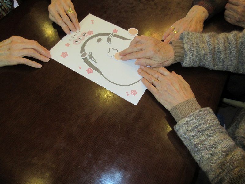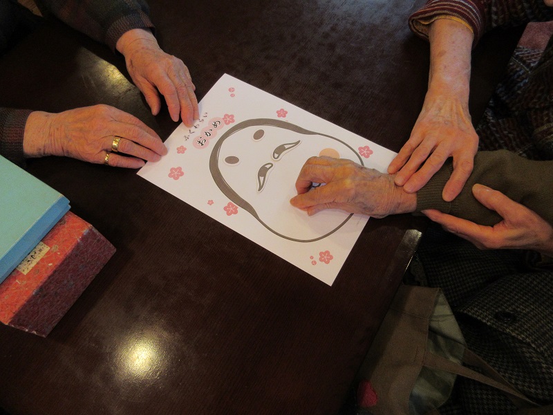「福笑い」は、入居者の方同士が助け合いながら楽しまれていましたが