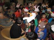 園児の皆さんは今年もうさぎ、オオカミ、羊、ニワトリの被り物やカボチャの仮装をしていて