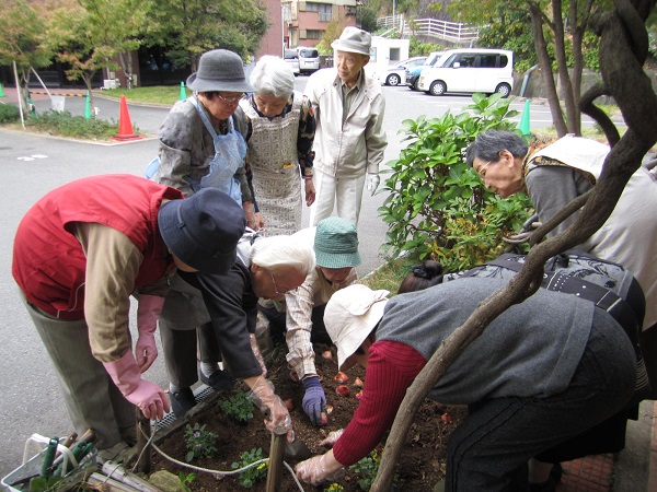 昨日は、ご入居者様9名と花壇づくりを楽しみました。