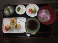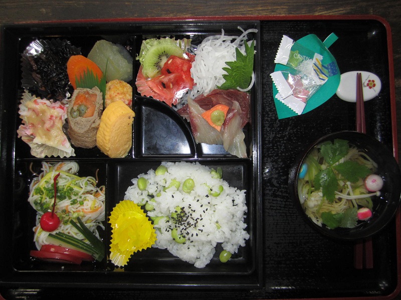 枝豆ご飯、冷やし素麺、ハマチの刺身、牛肉の野菜巻き等、バラエティーに富んだ内容
