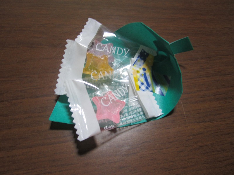 そして、私共スタッフからは、笹の葉の切り紙に星型のキャンディーを入れてプレゼントし、