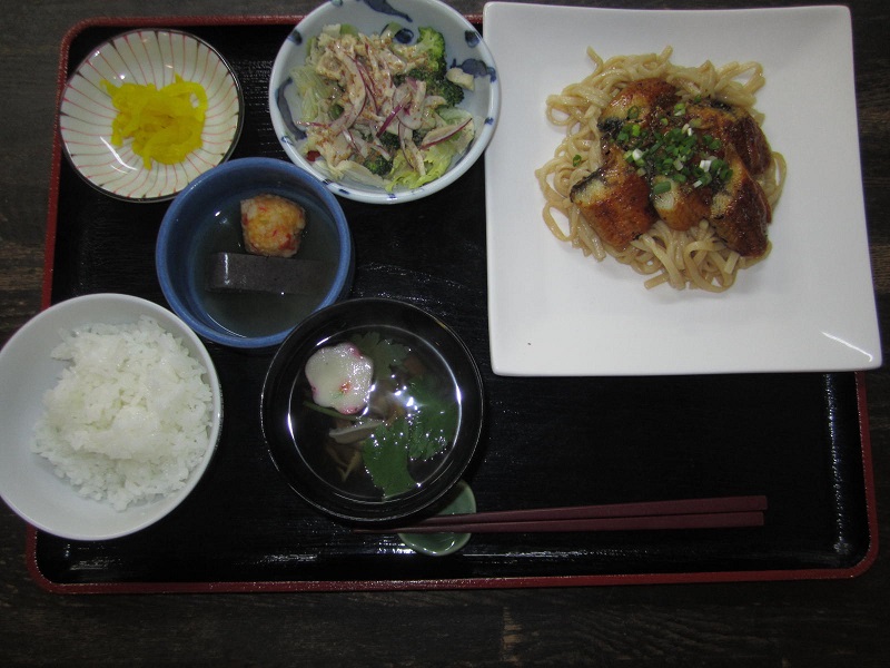 本日は土用の丑の日で、ご入居者様には鰻の蒲焼の焼きうどん定食をお召し上がり