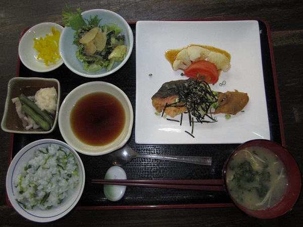 先日の7日のご夕食は、ご入居者様の無病息災を願って、七草粥をお召し上がり