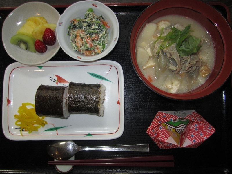 ご夕食には恵方巻をお出しし、ご入居様からは、「美味しかった♪」「全部食べたよ!!」