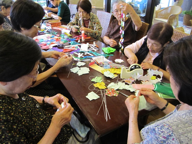 七夕飾りを作りながら、皆様のお話も盛り上がっていて、楽しい時間をお過ごし
