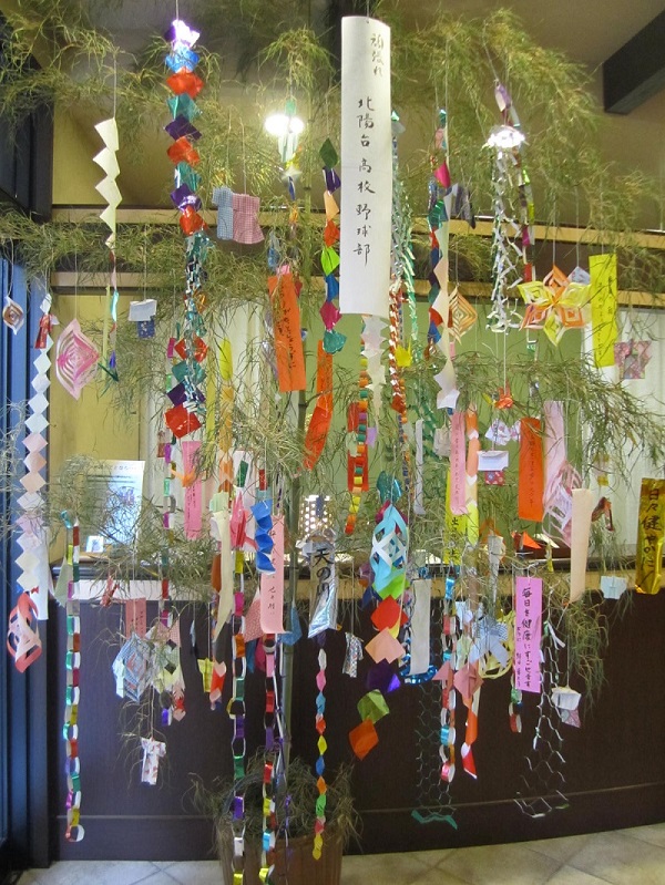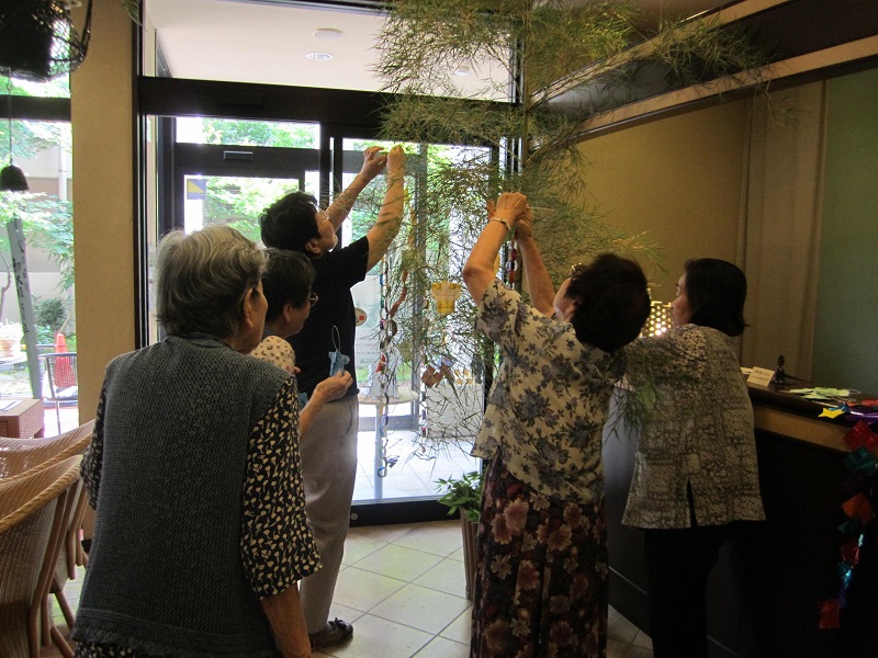 織姫と彦星の飾りを作って、ロビーに設置した大きな笹に皆様と一緒に飾りつけました!!