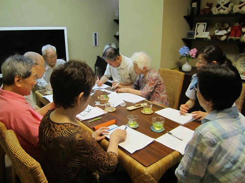 高得点の句は、入居者のU様に短冊に書いていただき、