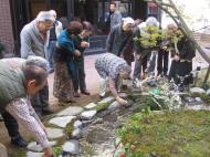 完成した小川の周りには、雪柳や山吹、ツワブキ、トクサをはじめ、草花も植えています。