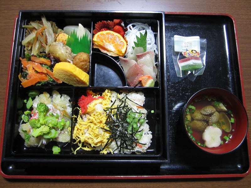 そして今宵のご夕食は、散らし寿司をメインとした松花堂弁当を皆様に
