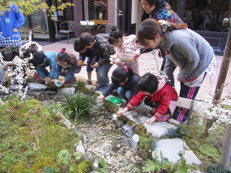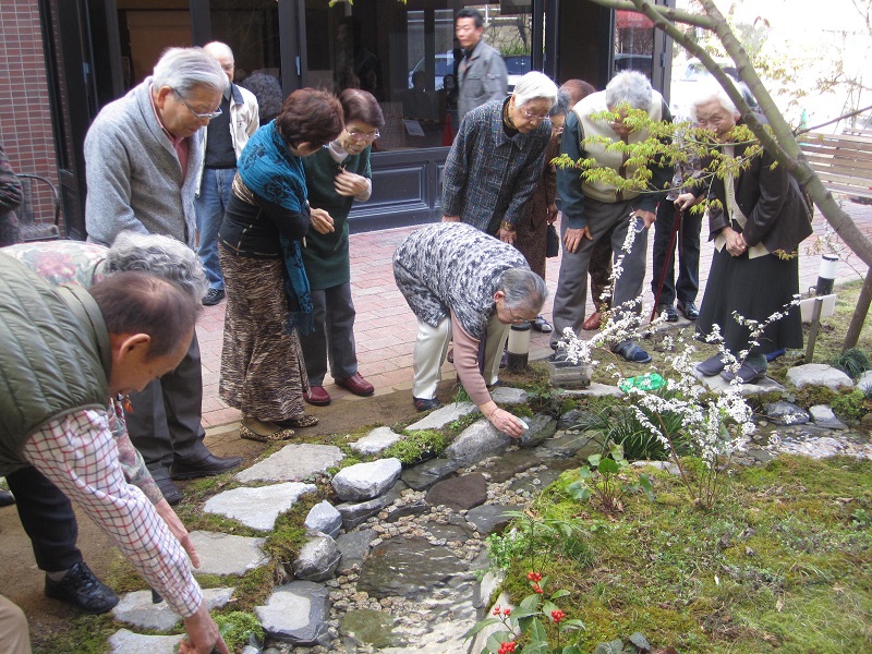 また、完成を記念して、入居者の皆様と園児の皆さんに「メダカ」の放流も