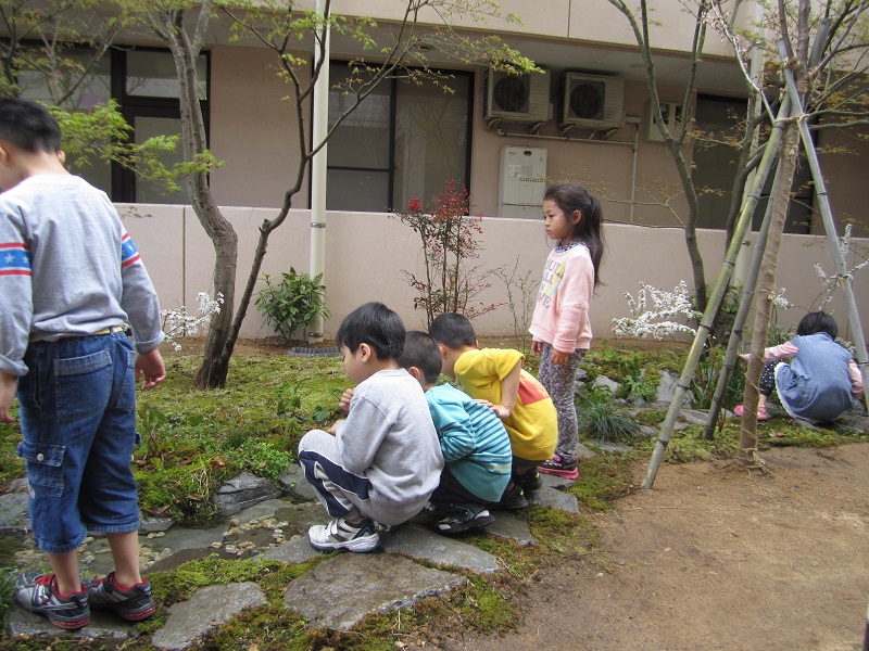 「メダカは、元気かな?」とさっそく遊びに来てくれました。