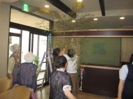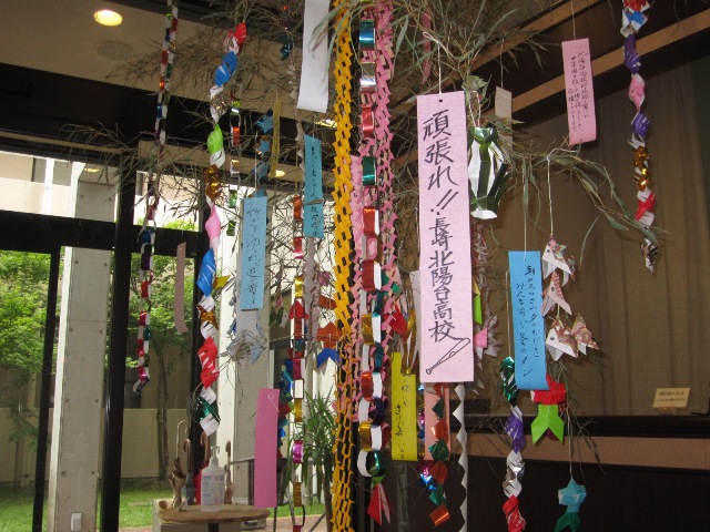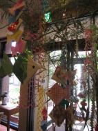 「帆掛け舟」「貝殻」などを作り、ロビーに設置した笹に飾り付けました。