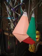 それぞれ会話も楽しみながら、色紙で「織姫と彦星」、「金魚」、「奴さん」