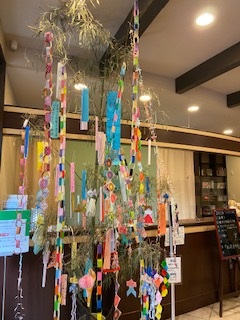また、ロビーに飾った大きな笹は、皆様手作りのお飾りと、お願い事がしたためられた短冊でいっぱいになりました。