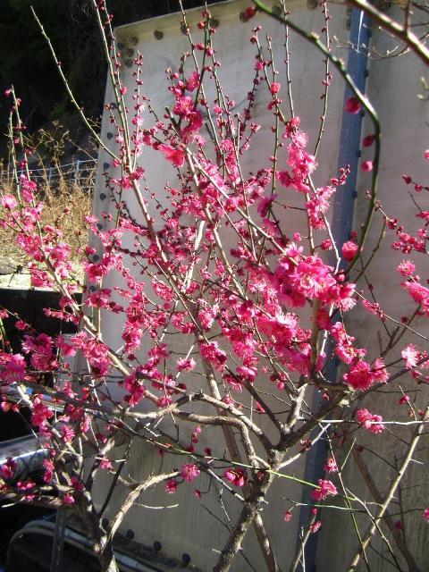 敷地内の紅梅が見頃です。