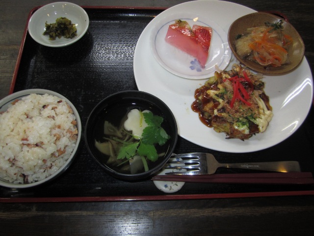 昨夜のお品書きは、広島風お好み焼きに、イワシの南蛮漬け、