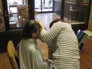 お店のお休みを利用して、「眉カット」のボランティアに来てくださいました。