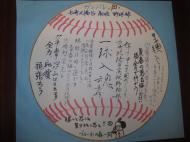 千羽鶴と色紙、スポーツドリンクと試合球を