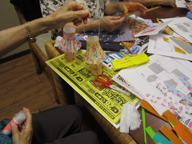 貝かざり・ちょうちん・金魚・織姫と牽牛など、色々な飾りが出来上がりました。