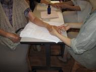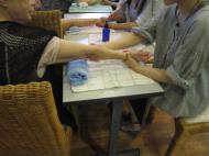 メンバーとともに、皆様の肘から下を丁寧にマッサージして、皆様からは