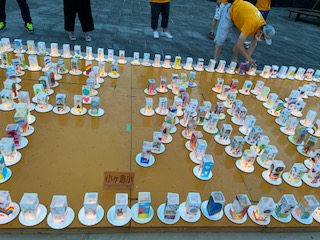 スタッフSが訪れた8月8日の夜は、市内の小中学校などで作られた手作りの