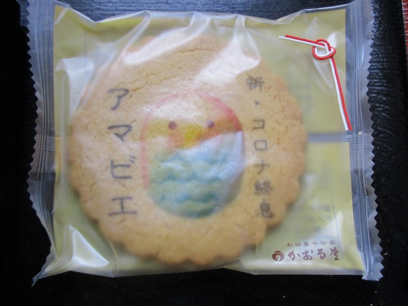 ご一緒にお出ししたお菓子は、アマビエがプリントされたサブレです。