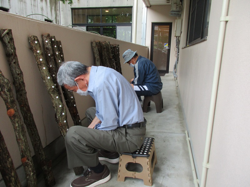 うえで、菌の植付けの作業をしていただきました。